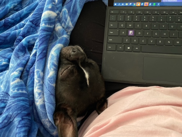I’d be remiss if I didn’t mention my furry coworker, Tux! Working for home has meant I’ve gotten to spend more time with this little guy and I’m definitely not mad about it. He went through an adjustment period in the beginning trying to figure out why I was staring at a computer screen and ignoring his desperate attempts to play. He’s a smart cookie though because he’s got it figured out now and just guards his window, sleeps or plays solo until I leave my desk. Also he must know I’m talking about him because he just plopped over next to me for snuggles. Going back to the office will be tough because right now there’s no where I’d rather be than with tux snuggled at my side, head in my lap and me hovering over him to type 🙂