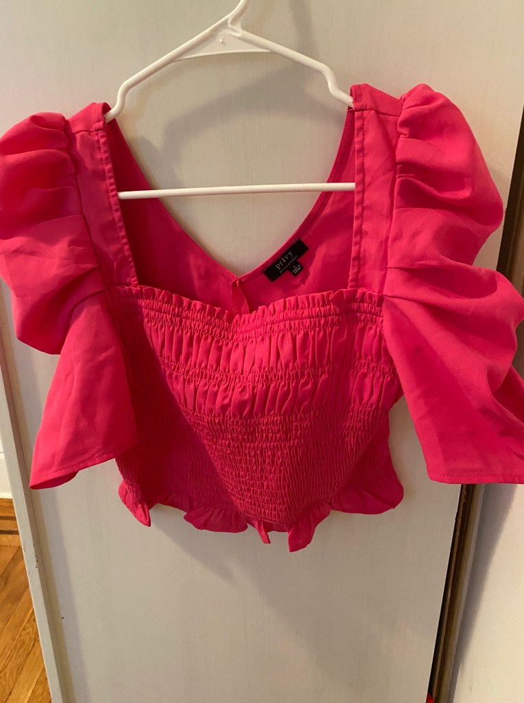 I LOVED this top! It’s super on trend with the smocked bodice and puffy shoulders. I would have absolutely kept this if it fit but the sleeves were way too tight. It retails for $54 and is $16.99 on Thred Up.
